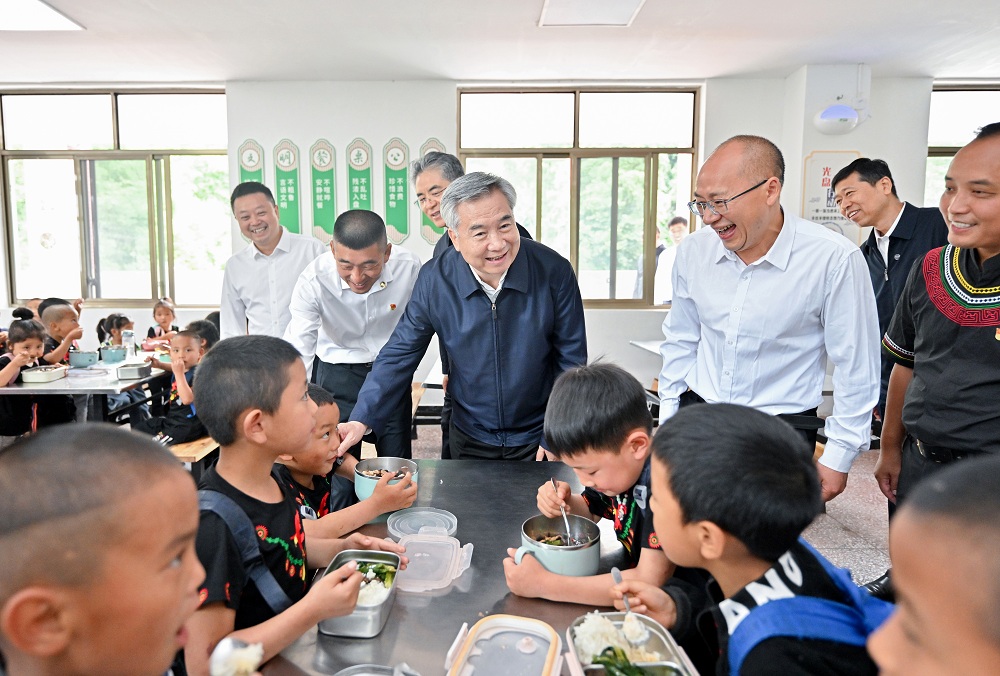 5月29日至6月1日,中共中央政治局常委、中央纪委书记李希到四川调研。这是5月30日,李希在乐山市马边彝族自治县小谷溪村学校考察。新华社记者 岳月伟 摄