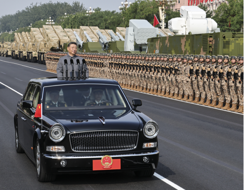 雄壮的军乐声中,习近平乘车沿着宽阔的长安街,依次检阅13个徒步方队、1个战旗方队、22个装备方队。受阅部队军容严整、意气风发,铁甲战车整齐列阵、威风凛凛。这是人民军队奋进建军百年的崭新亮相,这是中华民族捍卫世界和平的坚定宣示。