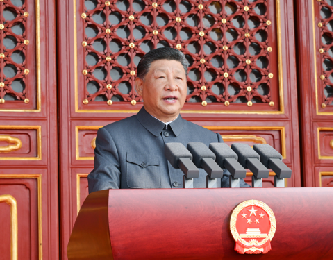 9月3日,纪念中国人民抗日战争暨世界反法西斯战争胜利80周年大会在北京天安门广场隆重举行。中共中央总书记、国家主席、中央军委主席习近平发表重要讲话。新华社记者 燕雁 摄