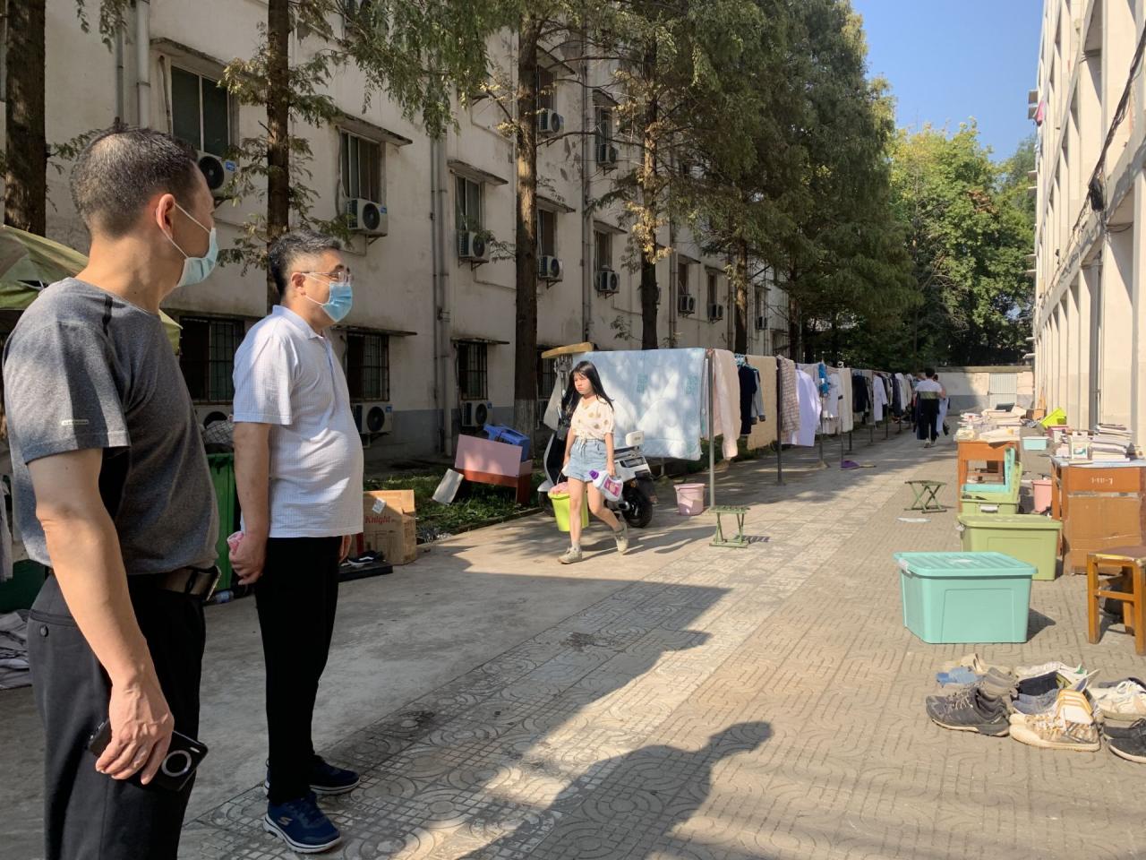 蒋光忠检查南苑学生宿舍,详细询问返校学生的生活、学习情况,要求学生要注意宿舍卫生,做好个人防护。并要求宿舍管理员要严格按要求做好楼栋的疫情防控工作。