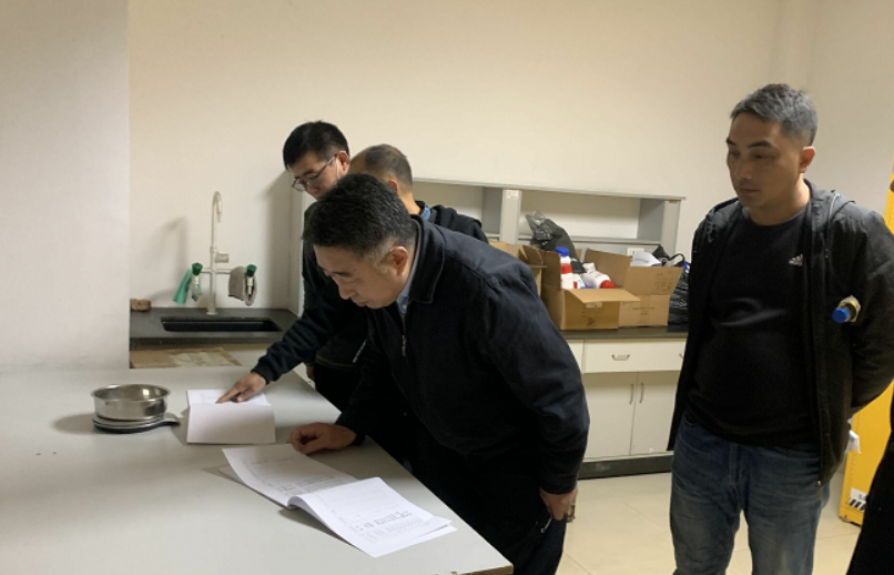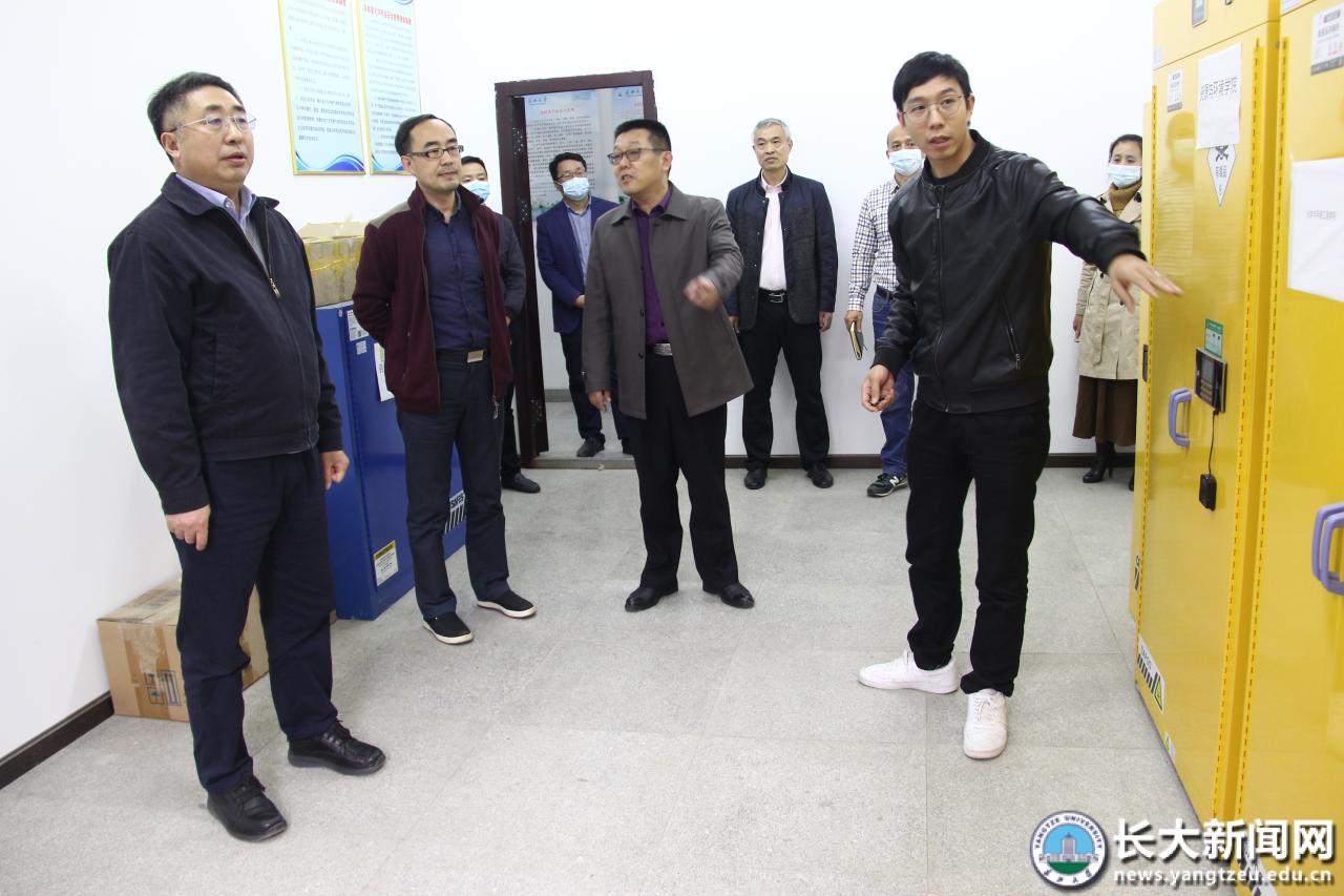 随后蒋光忠和相关主管部门负责人一起对医学部、化工学院、物理学院和东校区危废暂存柜等开展检查。