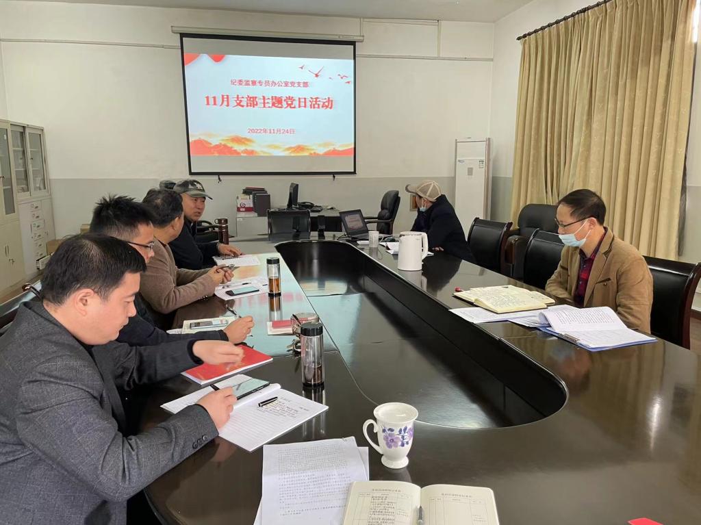 11月24日上午,纪委监察专员办公室党支部在6教420会议室召开11月“支部主题党日”活动。会上,纪检监察机关党员干部通过学习党的创新理论、讲授微党课、开展主题研讨等形式武装头脑,全面学习宣传贯彻党的二十大精神。活动由党支部副书记朱光耀同志主持。