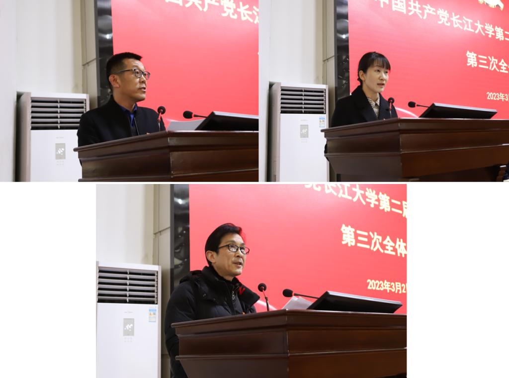 武汉校区管委会党工委纪检委员颜建洲、党委组织部副部长张娟、人文与新媒体学院党委书记杨克非三位代表,分别围绕作风建设、全面从严治党体系建设和清廉长大建设作了经验性、表态性发言。
