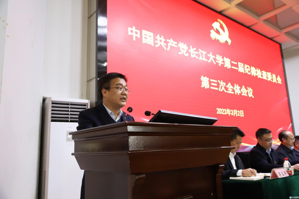 “坚定不移正风肃纪反腐,充分发挥监督保障执行、促进完善发展作用,监督治理效能不断提升,为学校实现更高质量发展提供坚强保障。”刘靖君代表韦德体育bevictor向全会作工作报告,总结2022年纪检监察工作,部署2023年全面从严治党、党风廉政建设和反腐败工作。