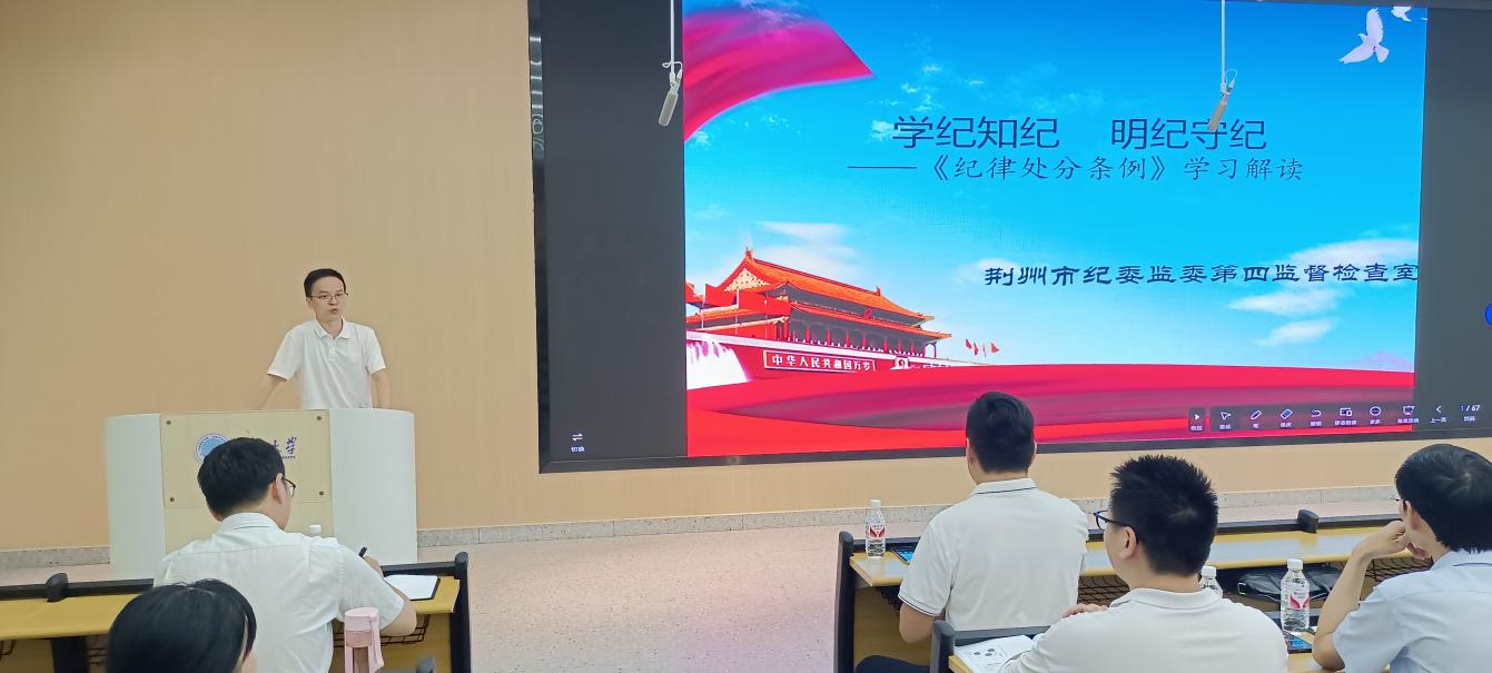 为进一步推进全院党纪学习教育见行见效、入脑入心,引导全院党员深刻理解把握新修订的《中国共产党纪律处分条例》(以下简称《条例》)主要内容,6月13日晚,荆州市纪委监委第四监督检查室主任胡辉应邀到计科学院作辅导报告。报告会由计科学院党委书记郑健主持,学院全体师生党员参加学习。