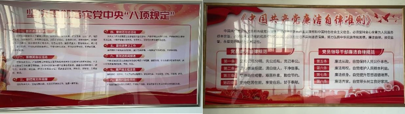 结合后勤各服务板块工作特性,后勤服务集团党委量身定制贴合实际的廉政展示内容。党中央八项规定、党员干部廉洁自律规范、食品安全“四个最严”要求、安全维修“八安八险”准则、医护人员廉洁从业九项规定等廉政核心要点,以图文并茂的形式呈现,使廉政教育入眼、入脑、入心。