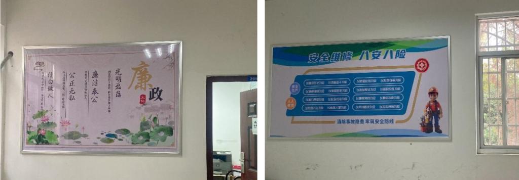 后勤服务集团党委以直观呈现、浸润无声为建设思路,致力于将廉政条文形象化为生动鲜活的视觉元素,打造沉浸式廉政教育场景。后勤服务集团党委巧妙运用墙面空间,精心设计与布局,在后勤办公楼楼道口、楼道及会议室等公共区域,打造集思想性、观赏性、教育性于一体的廉政文化墙。