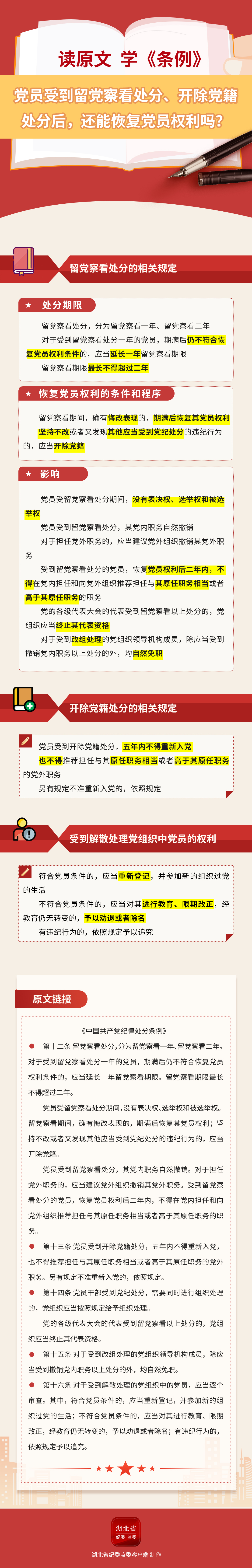 读原文 学《条例》丨党员受到留党察看处分、开除党籍处分后,还能恢复党员权利吗?