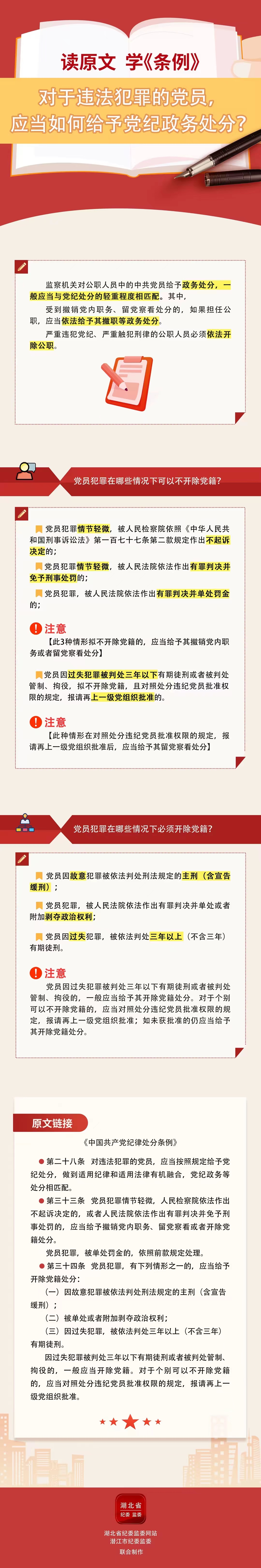读原文 学《条例》丨对于违法犯罪的党员,应当如何给予党纪政务处分?