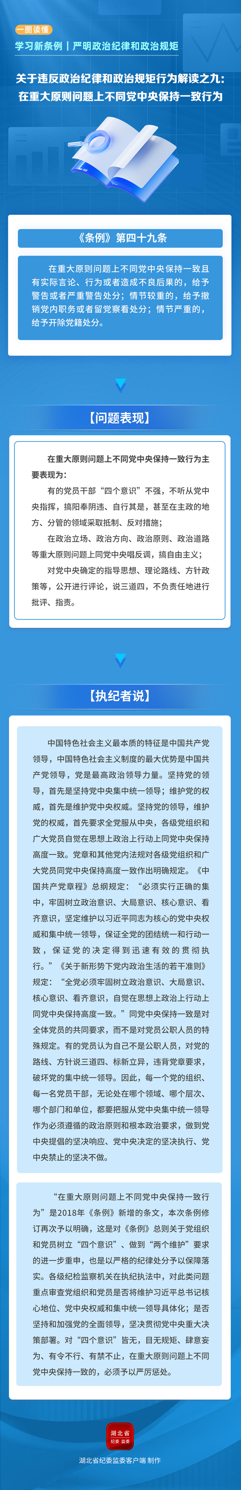 一图读懂丨关于违反政治纪律和政治规矩行为解读之九:在重大原则问题上不同党中央保持一致行为
