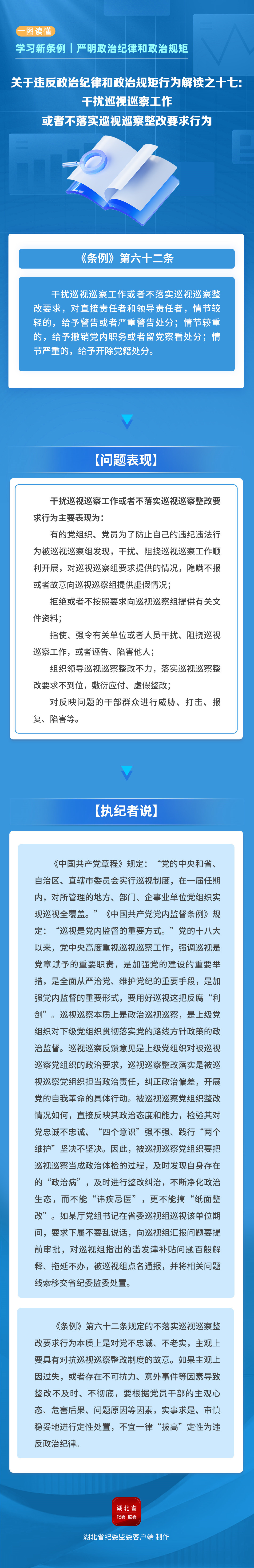 一图读懂丨关于违反政治纪律和政治规矩行为解读之十七:干扰巡视伟德bv国际体育或者不落实巡视巡察整改要求行