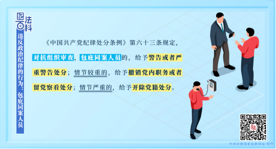《中国共产党纪律处分条例》第六十三条规定,对抗组织审查,包庇同案人员的,给予警告或者严重警告处分;情节较重的,给予撤销党内职务或者留党察看处分;情节严重的,给予开除党籍处分。