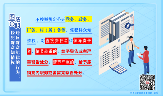 《中国共产党纪律处分条例》第一百二十八条规定,不按照规定公开党务、政务、厂务、村(居)务等,侵犯群众知情权,对直接责任者和领导责任者,情节较重的,给予警告或者严重警告处分;情节严重的,给予撤销党内职务或者留党察看处分。该规定既适用于党组织,也适用于党员。